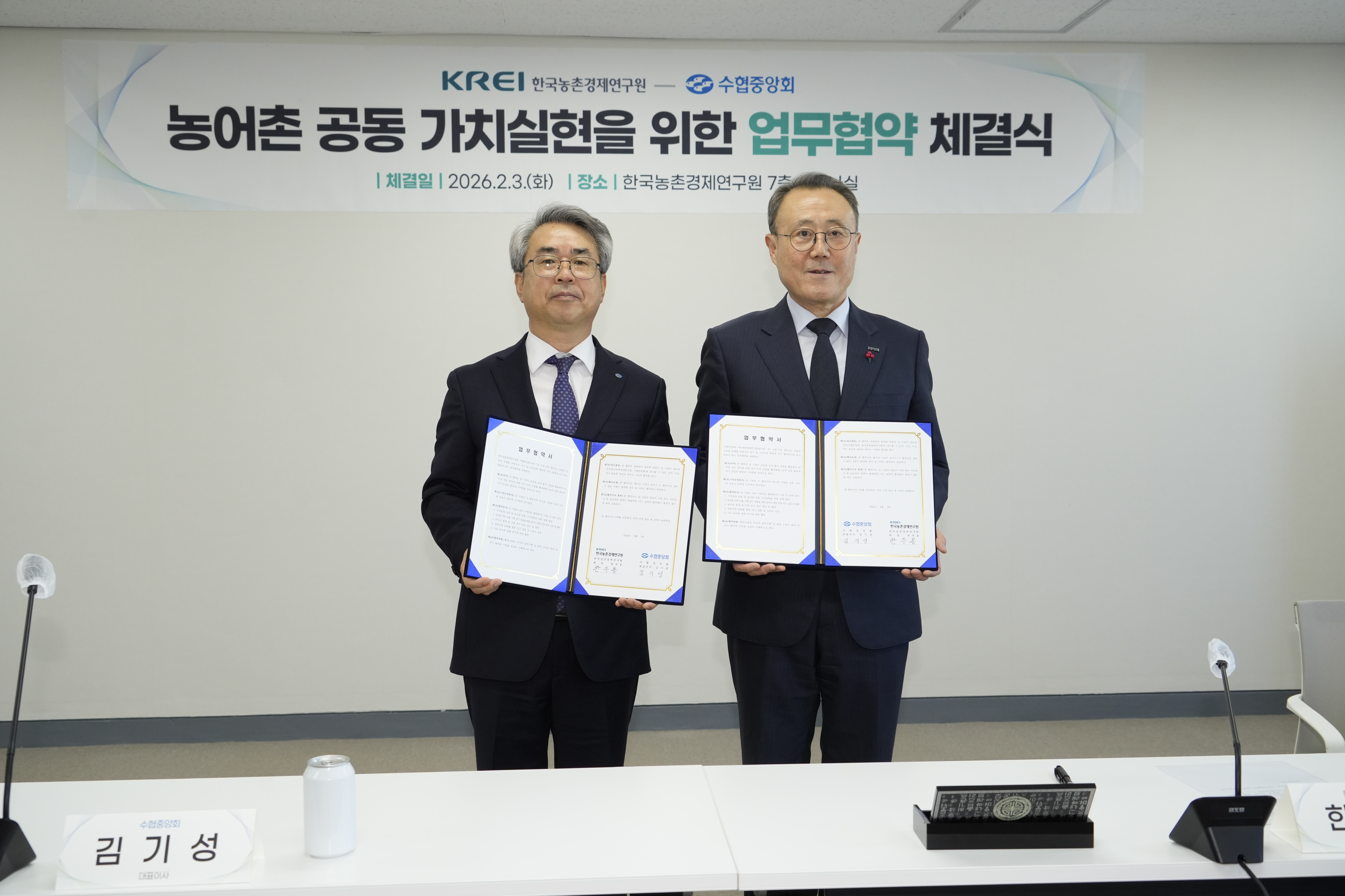 본회는 2026년 2월 3일 한국농촌경제연구원(나주) 7층 세미나실에서 한국농촌경제연구원과 농어촌 공공 가치실현을 위한 업무협약을 체결하였습니다.